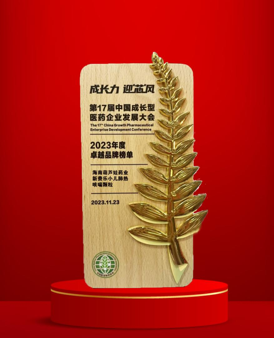 大会期间,一年一度的“金叶奖•2023年度医药行业风云人物奖”榜单重磅揭晓,AG贵宾药业集团党委书记、董事长刘景萍荣耀上榜。金叶奖是为了表彰广大医药企业家或企业为行业茁壮发展做出的卓越贡献而设立的奖项,“金”象征着品质、品牌、影响力,“叶”象征着生命、健康、成长力。金与叶结合,有“敬业、兢业、竞业”之意。此外,集团黄金单品新费乐®小儿肺热咳喘颗粒凭借卓越的产品质量和品牌影响力赢得了行业、市场和消费者的肯定,获得了“2023年度卓越品牌奖”。