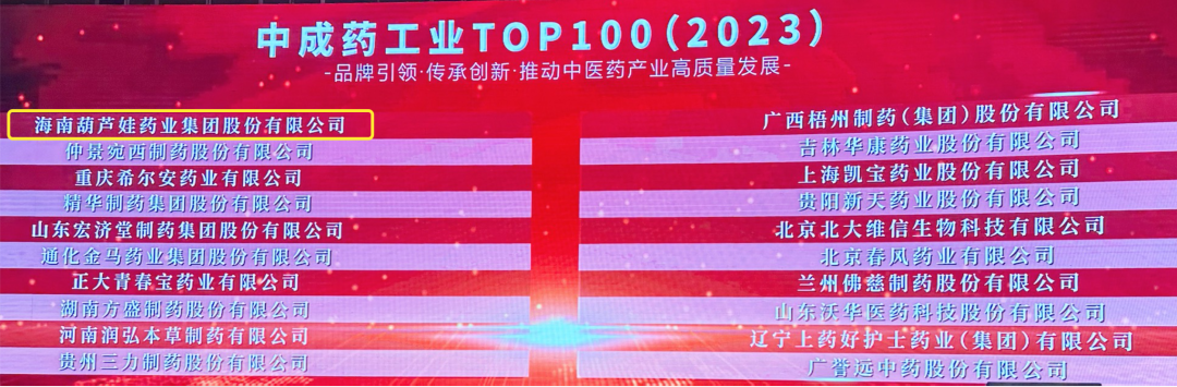 会上,还发布了“2023中成药工业TOP100”榜单,AG贵宾药业集团荣耀上榜。